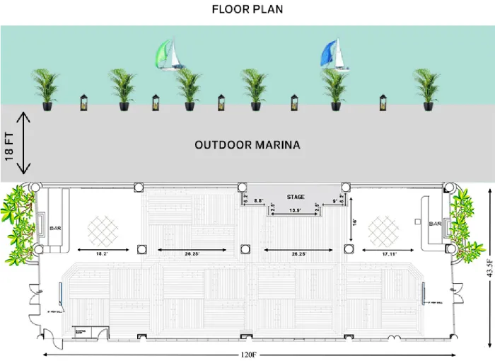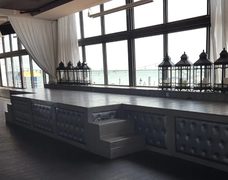 Professional events rely on dependable production. Briza On The Bay includes built-in audio and visual systems with multiple projectors, drop-down screens, microphones, speakers, and an indoor stage. Custom LED lighting supports brand color control and visual pacing across the room. Projection mapping allows presentations and branded visuals to shape the space and hold attention. These production capabilities support teams using a corporate meeting venue for presentations, panels, and executive sessions.